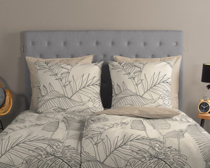 Dekbedovertrek “Sym” van Good Morning met bladeren, in de kleur “Zand” is gemaakt van 100% katoen. Deze kwaliteit is ademend, vochtabsorberend en voelt zacht en soepel aan. Dit mooie dekbedovertrek fleurt iedere slaapkamer op en is geschikt voor ieder jaargetijde. Het katoenen dekbedovertrek is heerlijk koel in de zomer en geeft warmte in de winter.