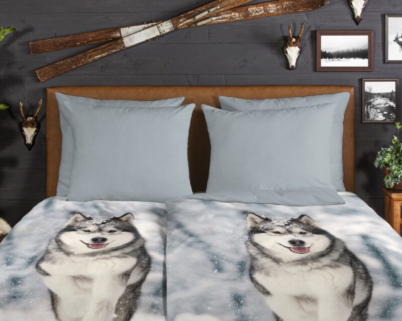 Flanellen dekbedovertrek “Husky” van Good Morning met husky hond, in de kleur “Grijs” is gemaakt van 100% geruwde 100% katoen/flanel. Doordat het katoen licht opgeruwd is, ontstaat er een zacht laagje. Deze warme, zachte stof is ademend en vochtabsorberend. Dit mooie dekbedovertrek fleurt iedere slaapkamer op en is uitermate geschikt voor de koude wintermaanden.