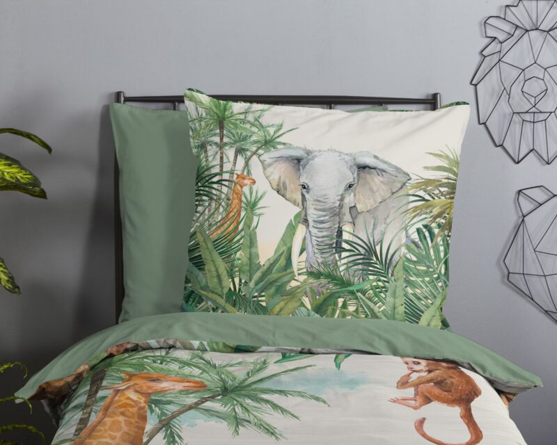 Kinderdekbedovertrek “Jungle” van Good Morning met dieren in de jungle, in de kleur “Multi” is gemaakt van 100% katoen. Deze kwaliteit is ademend, vochtabsorberend en voelt zacht en soepel aan. Dit leuke kinderdekbedovertrek is een toevoeging aan iedere kinderkamer en is geschikt voor ieder jaargetijde. Het katoenen dekbedovertrek is heerlijk koel in de zomer en geeft warmte in de winter.