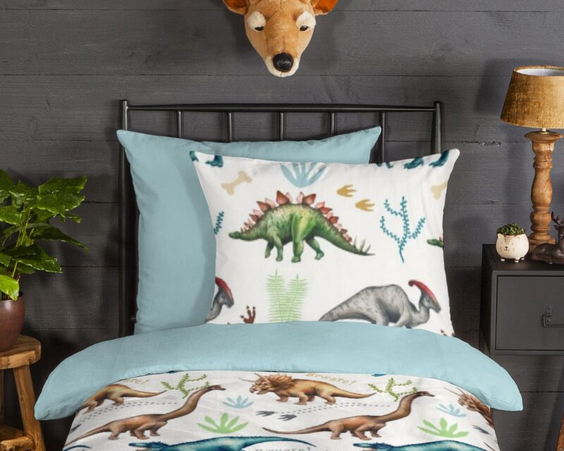 Flanellen Kinderdekbedovertrek “Dino” van Good Morning met dino’s, in de kleur “Multi” is gemaakt van 100% geruwde 100% katoen/flanel. Doordat het katoen licht opgeruwd is, ontstaat er een zacht laagje. Deze warme, zachte stof is ademend en vochtabsorberend. Dit leuke kinderdekbedovertrek is een toevoeging aan iedere kinderkamer en is uitermate geschikt voor de koude wintermaanden.