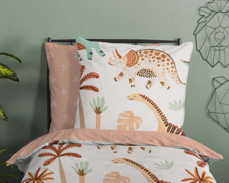 Kinderdekbedovertrek “Dino” van Good Morning met dinosaurussen, in de kleur “Multi” is gemaakt van 100% katoen. Deze kwaliteit is ademend, vochtabsorberend en voelt zacht en soepel aan. Dit leuke kinderdekbedovertrek is een toevoeging aan iedere kinderkamer en is geschikt voor ieder jaargetijde. Het katoenen dekbedovertrek is heerlijk koel in de zomer en geeft warmte in de winter.