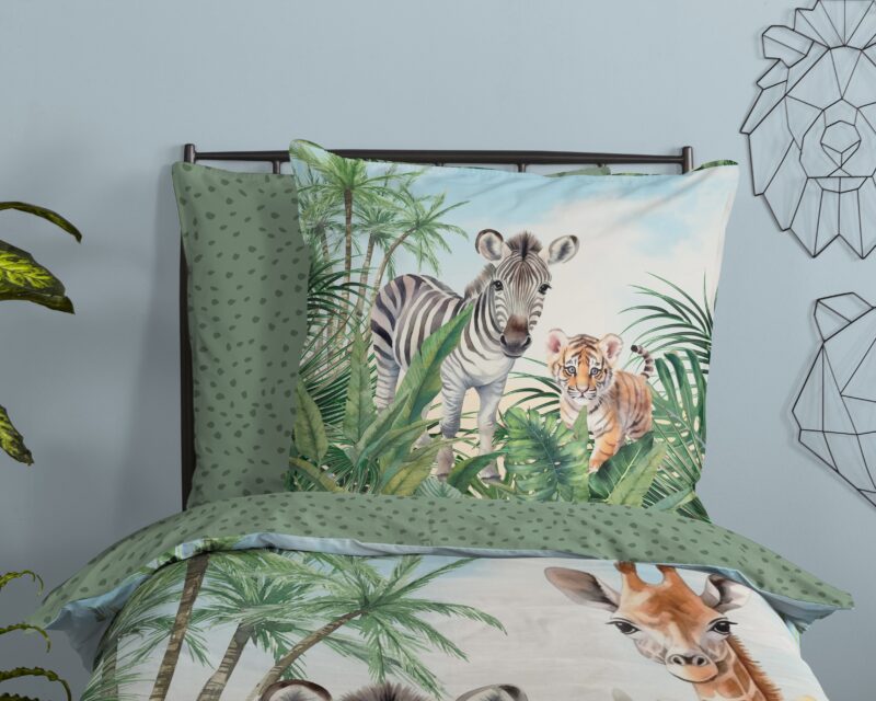 Kinderdekbedovertrek “Thabo” van Good Morning met jungle dieren, in de kleur “Multi” is gemaakt van 100% katoen. Deze kwaliteit is ademend, vochtabsorberend en voelt zacht en soepel aan. Dit leuke kinderdekbedovertrek is een toevoeging aan iedere kinderkamer en is geschikt voor ieder jaargetijde. Het katoenen dekbedovertrek is heerlijk koel in de zomer en geeft warmte in de winter.