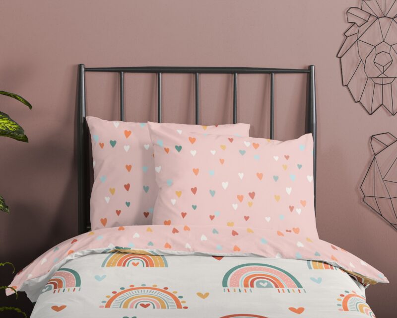 Kinderdekbedovertrek “Louie” van Good Morning met regenbogen, in de kleur “Multi” is gemaakt van 100% katoen. Deze kwaliteit is ademend, vochtabsorberend en voelt zacht en soepel aan. Dit leuke kinderdekbedovertrek is een toevoeging aan iedere kinderkamer en is geschikt voor ieder jaargetijde. Het katoenen dekbedovertrek is heerlijk koel in de zomer en geeft warmte in de winter.