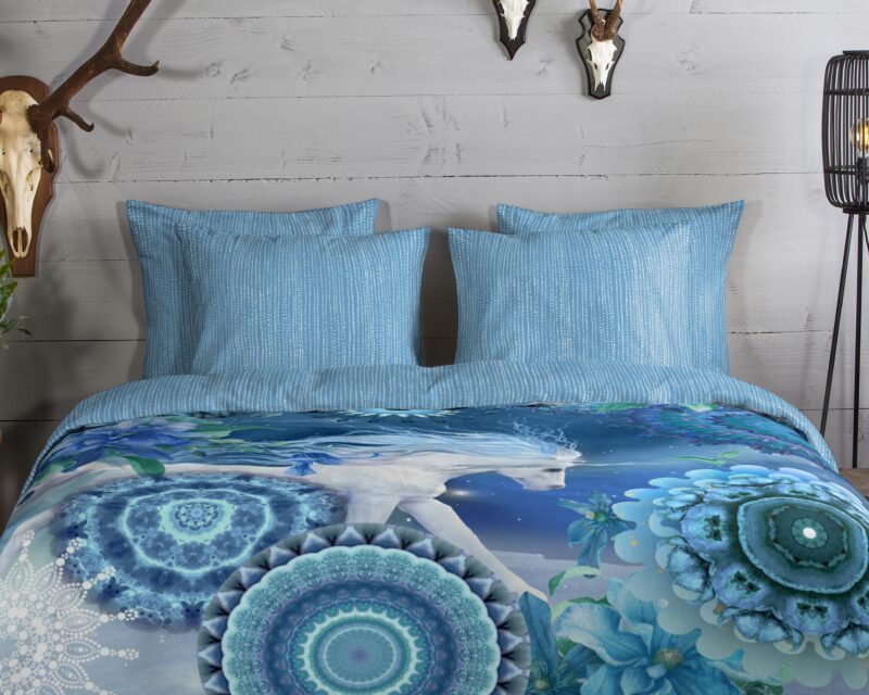 Flanellen dekbedovertrek “Lumi” van HIP. Dit opvallende dekbedovertrek met mandala’s en eenhoorn, in de kleur “Blauw” is gemaakt van 100% geruwde 100% katoen/flanel. Hip dekbedovertrekken zijn kleurrijk en uniek! Aan de achterkant van een Hip dekbedovertrek zit altijd een leuke, bijpassende print. Een dekbedovertrek van Hip fleurt iedere slaapkamer op!