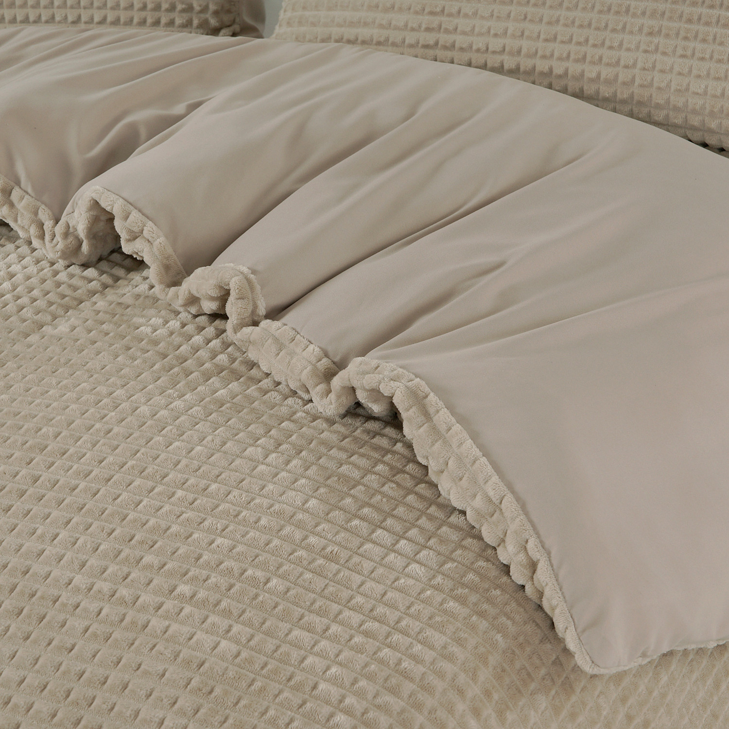 Geniet van ultiem slaapcomfort met het Sleeptime Teddy Check dekbedovertrek. Dit dekbedovertrek biedt een heerlijke zachte teddy kwaliteit die je bed omtovert tot een knusse en warme plek. De bovenzijde is gemaakt van 100% polyester teddy stof, die niet alleen extreem zacht aanvoelt, maar ook een luxe uitstraling geeft door de mooie schelpenstructuur. De onderzijde is vervaardigd van 100% microvezel, wat zorgt voor extra comfort tijdens het slapen.
