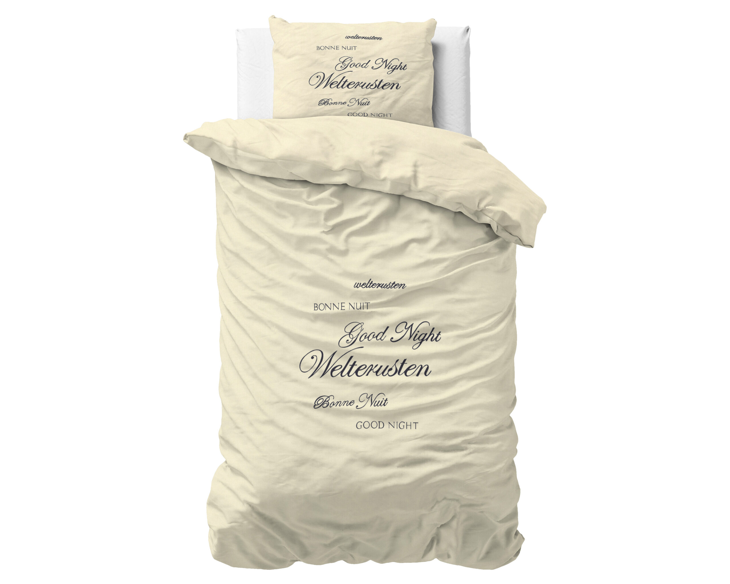 Word in stijl wakker en verfraai je slaapkamer met Welterusten, waar verfijnde esthetiek samensmelt met ongeëvenaard comfort. Deze tijdloze toevoeging aan je beddengoedcollectie biedt niet alleen een visueel feest met zijn haarscherpe digitale print, maar belooft ook een totale lengte van 220 cm, geschikt voor dekbedden van 200 en 220 cm lang.