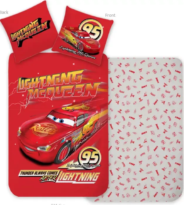 Disney Cars Dekbedovertrek Lightning McQueen. Een fijn katoenen eenpersoons dekbedovertrek van de bekende Cars-serie. Lightning McQueen heeft een prominente plek gekregen op deze overtrek. De achterzijde van het dekbed heeft een leuk patroon van diverse Cars plaatjes. Er is bijpassend een hoeslaken te verkrijgen (apart te bestellen). Een geweldig cadeau om te geven voor een verjaardag of de feestdagen!