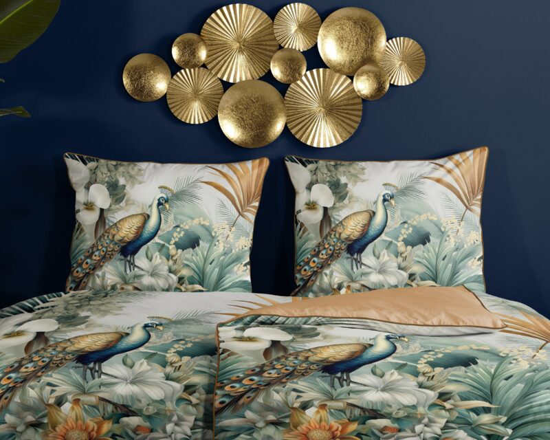 Satijnen dekbedovertrek “Dana” van Descanso. Dit stijlvolle dekbedovertrek met bladeren en vogels, in de kleur “Multi” is gemaakt van 100% katoen-satijn. Descanso dekbedovertrekken zijn luxueus, stijlvol en elegant! Aan de achterkant van een Descanso dekbedovertrek zit altijd een mooie, bijpassende uni kleur. Dekbedovertrekken en kussenslopen van Descanso zijn rondom voorzien van een luxe bies/ piping in een bijpassende kleur. Een Descanso dekbedovertrek geeft een luxe uitstraling aan uw slaapkamer!