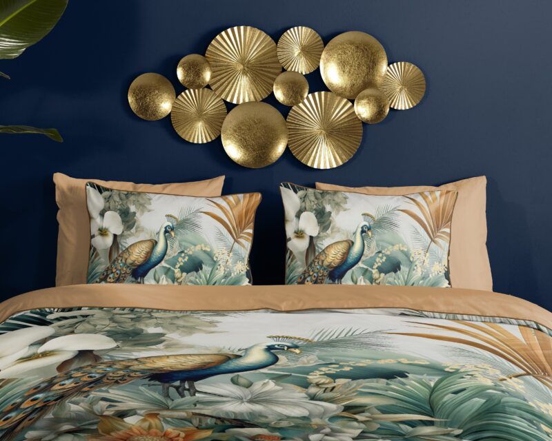 Satijnen dekbedovertrek “Dana” van Descanso. Dit stijlvolle dekbedovertrek met bladeren en vogels, in de kleur “Multi” is gemaakt van 100% katoen-satijn. Descanso dekbedovertrekken zijn luxueus, stijlvol en elegant! Aan de achterkant van een Descanso dekbedovertrek zit altijd een mooie, bijpassende uni kleur. Dekbedovertrekken en kussenslopen van Descanso zijn rondom voorzien van een luxe bies/ piping in een bijpassende kleur. Een Descanso dekbedovertrek geeft een luxe uitstraling aan uw slaapkamer!