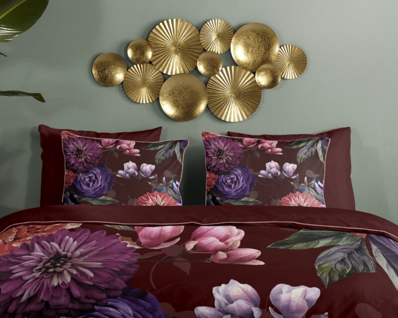 Satijnen dekbedovertrek “Bloomie” van Descanso. Dit stijlvolle dekbedovertrek met bloemen, in de kleur “Bordeaux” is gemaakt van 100% katoen-satijn. Descanso dekbedovertrekken zijn luxueus, stijlvol en elegant! Aan de achterkant van een Descanso dekbedovertrek zit altijd een mooie, bijpassende uni kleur. Dekbedovertrekken en kussenslopen van Descanso zijn rondom voorzien van een luxe bies/ piping in een bijpassende kleur. Een Descanso dekbedovertrek geeft een luxe uitstraling aan uw slaapkamer!