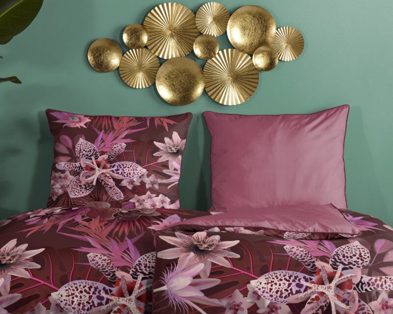 Satijnen dekbedovertrek “Farze” van Descanso. Dit stijlvolle dekbedovertrek met bloemen, in de kleur “Bordeaux” is gemaakt van 100% katoen-satijn. Descanso dekbedovertrekken zijn luxueus, stijlvol en elegant! Aan de achterkant van een Descanso dekbedovertrek zit altijd een mooie, bijpassende uni kleur. Dekbedovertrekken en kussenslopen van Descanso zijn rondom voorzien van een luxe bies/ piping in een bijpassende kleur. Een Descanso dekbedovertrek geeft een luxe uitstraling aan uw slaapkamer!