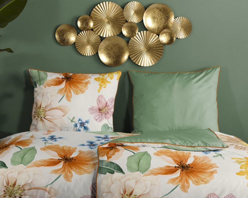 Descanso Dekbedovertrek “bloemen” – Ecru – (135×200 cm) – Biologisch Katoen satijn