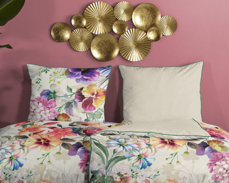 Descanso Dekbedovertrek “bloemen” – Ecru – (155×220 cm) – Biologisch Katoen satijn