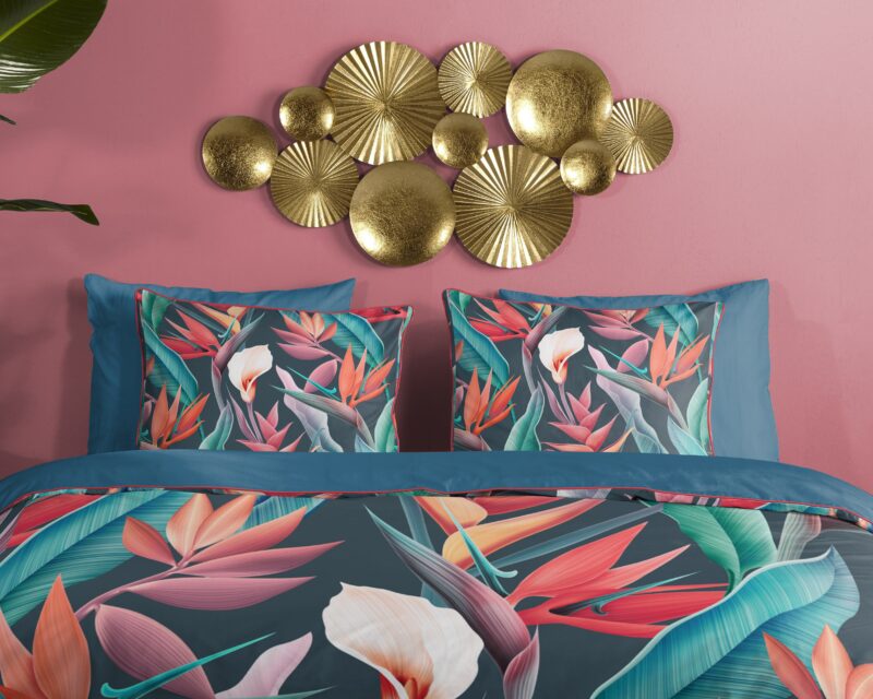 Satijnen dekbedovertrek “Chloe” van Descanso. Dit stijlvolle dekbedovertrek met bloemen en bladeren, in de kleur “Multi” is gemaakt van 100% katoen-satijn. Descanso dekbedovertrekken zijn luxueus, stijlvol en elegant! Aan de achterkant van een Descanso dekbedovertrek zit altijd een mooie, bijpassende uni kleur. Dekbedovertrekken en kussenslopen van Descanso zijn rondom voorzien van een luxe bies/ piping in een bijpassende kleur. Een Descanso dekbedovertrek geeft een luxe uitstraling aan uw slaapkamer!