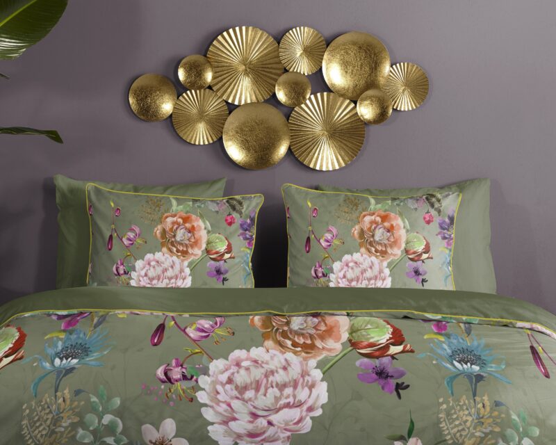 Satijnen dekbedovertrek “Parma” van Descanso. Dit stijlvolle dekbedovertrek met bloemen, in de kleur “Groen” is gemaakt van 100% katoen-satijn. Descanso dekbedovertrekken zijn luxueus, stijlvol en elegant! Aan de achterkant van een Descanso dekbedovertrek zit altijd een mooie, bijpassende uni kleur. Dekbedovertrekken en kussenslopen van Descanso zijn rondom voorzien van een luxe bies/ piping in een bijpassende kleur. Een Descanso dekbedovertrek geeft een luxe uitstraling aan uw slaapkamer!