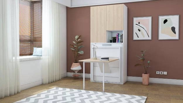 Deze eenpersoons opklapbed met bureau en kast heeft u al vanaf €2,31 per nacht inclusief levering & montage! Als u betaalt met Spraypay, gespreid betalen over 36 maanden!