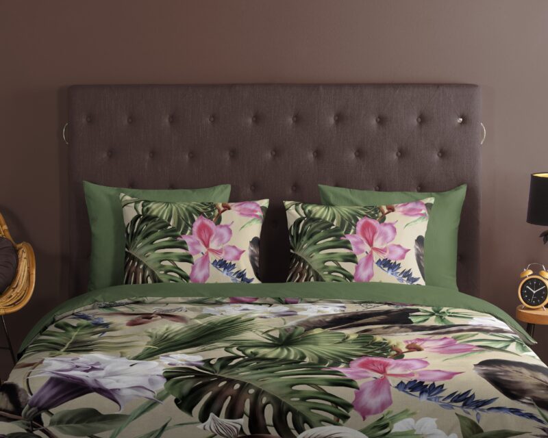 Dekbedovertrek “Irze” van Good Morning met bladeren, in de kleur “Groen” is gemaakt van 100% katoen. Deze kwaliteit is ademend, vochtabsorberend en voelt zacht en soepel aan. Dit mooie dekbedovertrek fleurt iedere slaapkamer op en is geschikt voor ieder jaargetijde. Het katoenen dekbedovertrek is heerlijk koel in de zomer en geeft warmte in de winter.