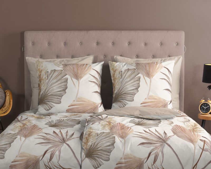 Dekbedovertrek “Vince” van Good Morning met bladeren, in de kleur “Zand” is gemaakt van 100% katoen. Deze kwaliteit is ademend, vochtabsorberend en voelt zacht en soepel aan. Dit mooie dekbedovertrek fleurt iedere slaapkamer op en is geschikt voor ieder jaargetijde. Het katoenen dekbedovertrek is heerlijk koel in de zomer en geeft warmte in de winter.