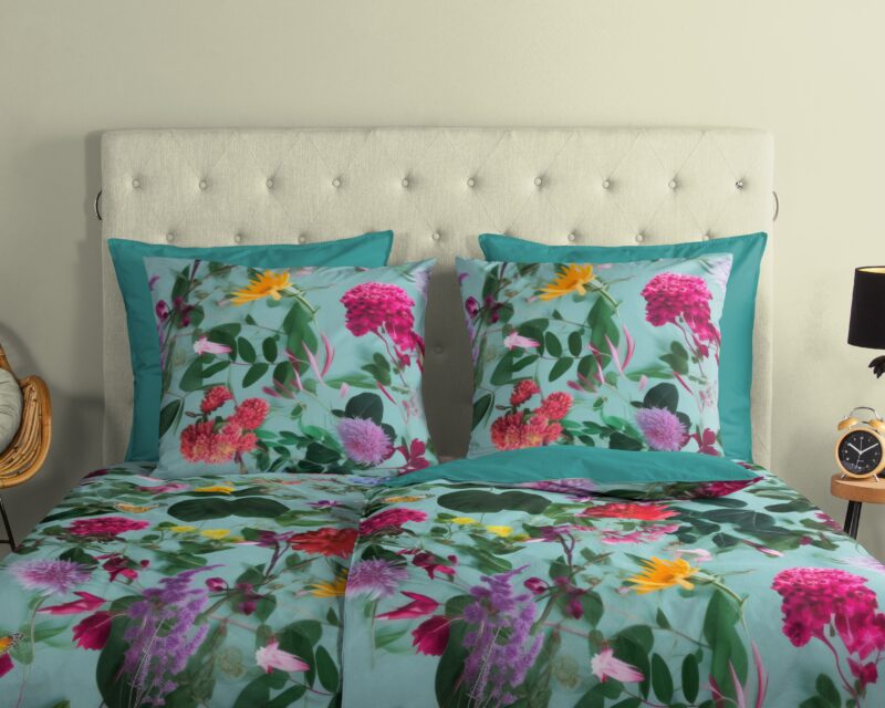 Dekbedovertrek “Imma” van Good Morning met bloemen, in de kleur “Aqua” is gemaakt van 100% katoen. Deze kwaliteit is ademend, vochtabsorberend en voelt zacht en soepel aan. Dit mooie dekbedovertrek fleurt iedere slaapkamer op en is geschikt voor ieder jaargetijde. Het katoenen dekbedovertrek is heerlijk koel in de zomer en geeft warmte in de winter.