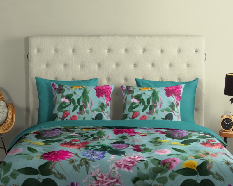Dekbedovertrek “Imma” van Good Morning met bloemen, in de kleur “Aqua” is gemaakt van 100% katoen. Deze kwaliteit is ademend, vochtabsorberend en voelt zacht en soepel aan. Dit mooie dekbedovertrek fleurt iedere slaapkamer op en is geschikt voor ieder jaargetijde. Het katoenen dekbedovertrek is heerlijk koel in de zomer en geeft warmte in de winter.