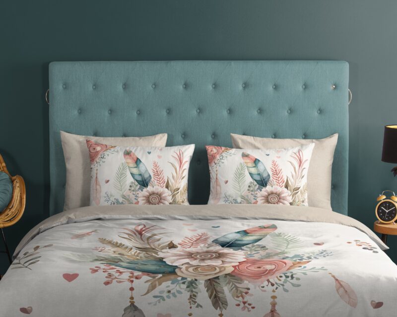 Good Morning Dekbedovertrek “bloemen en veren” – Ecru – (240×200/220 cm) – Katoen