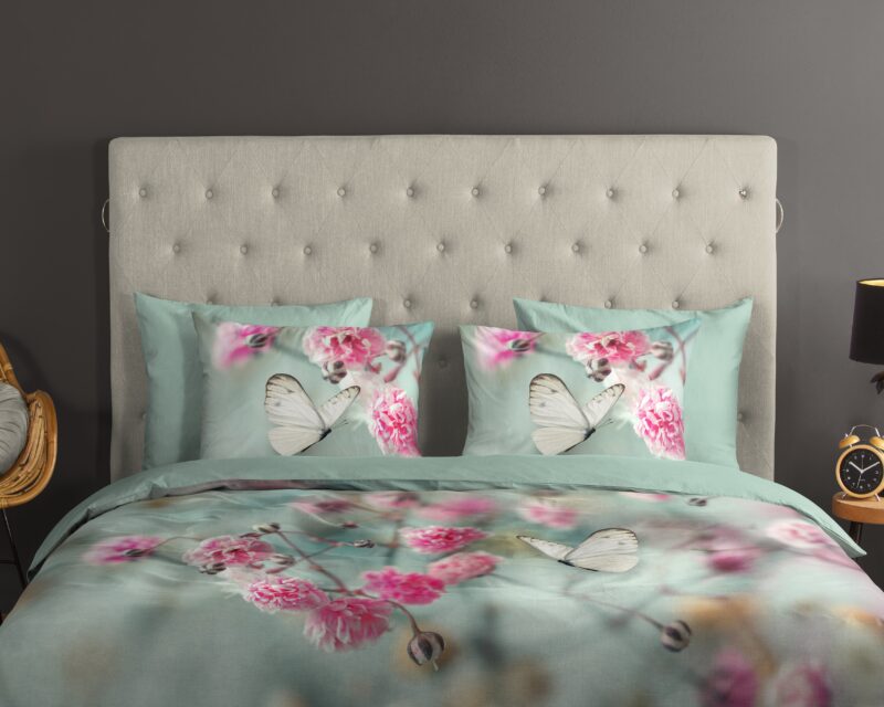 Dekbedovertrek “Adel” van Good Morning met bloemen en vlinders, in de kleur “Mint” is gemaakt van 100% katoen. Deze kwaliteit is ademend, vochtabsorberend en voelt zacht en soepel aan. Dit mooie dekbedovertrek fleurt iedere slaapkamer op en is geschikt voor ieder jaargetijde. Het katoenen dekbedovertrek is heerlijk koel in de zomer en geeft warmte in de winter.