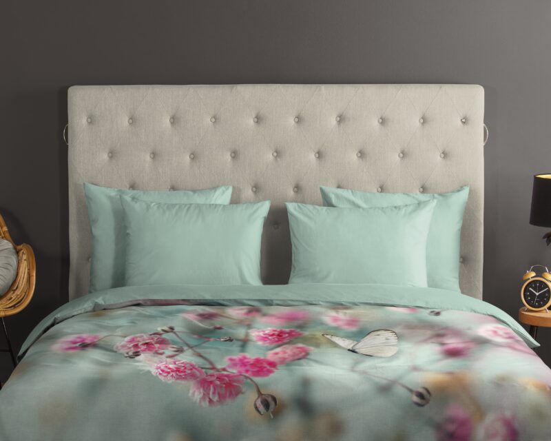 Dekbedovertrek “Adel” van Good Morning met bloemen en vlinders, in de kleur “Mint” is gemaakt van 100% katoen. Deze kwaliteit is ademend, vochtabsorberend en voelt zacht en soepel aan. Dit mooie dekbedovertrek fleurt iedere slaapkamer op en is geschikt voor ieder jaargetijde. Het katoenen dekbedovertrek is heerlijk koel in de zomer en geeft warmte in de winter.