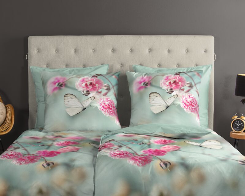 Dekbedovertrek “Adel” van Good Morning met bloemen en vlinders, in de kleur “Mint” is gemaakt van 100% katoen. Deze kwaliteit is ademend, vochtabsorberend en voelt zacht en soepel aan. Dit mooie dekbedovertrek fleurt iedere slaapkamer op en is geschikt voor ieder jaargetijde. Het katoenen dekbedovertrek is heerlijk koel in de zomer en geeft warmte in de winter.
