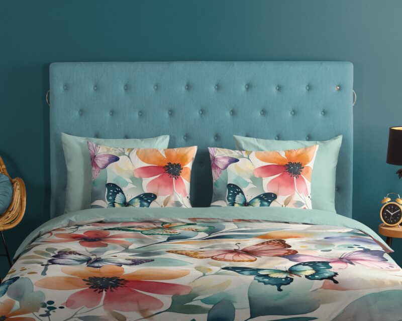 Dekbedovertrek “Vallee” van Good Morning met bloemen en vlinders, in de kleur “Multi” is gemaakt van 100% katoen. Deze kwaliteit is ademend, vochtabsorberend en voelt zacht en soepel aan. Dit mooie dekbedovertrek fleurt iedere slaapkamer op en is geschikt voor ieder jaargetijde. Het katoenen dekbedovertrek is heerlijk koel in de zomer en geeft warmte in de winter.