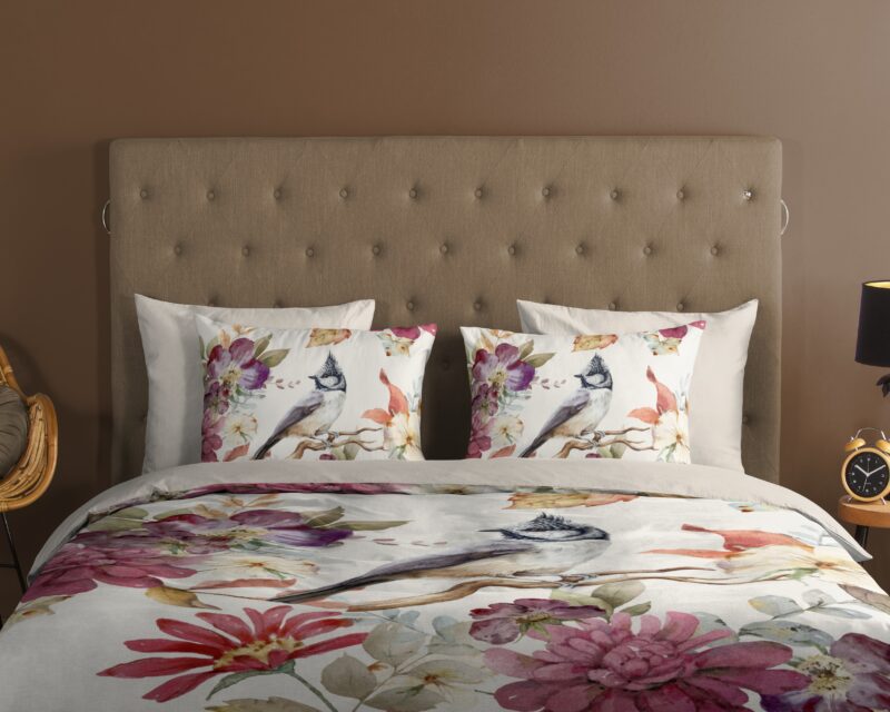 Dekbedovertrek “Inga” van Good Morning met bloemen en vogels, in de kleur “Multi” is gemaakt van 100% katoen. Deze kwaliteit is ademend, vochtabsorberend en voelt zacht en soepel aan. Dit mooie dekbedovertrek fleurt iedere slaapkamer op en is geschikt voor ieder jaargetijde. Het katoenen dekbedovertrek is heerlijk koel in de zomer en geeft warmte in de winter.