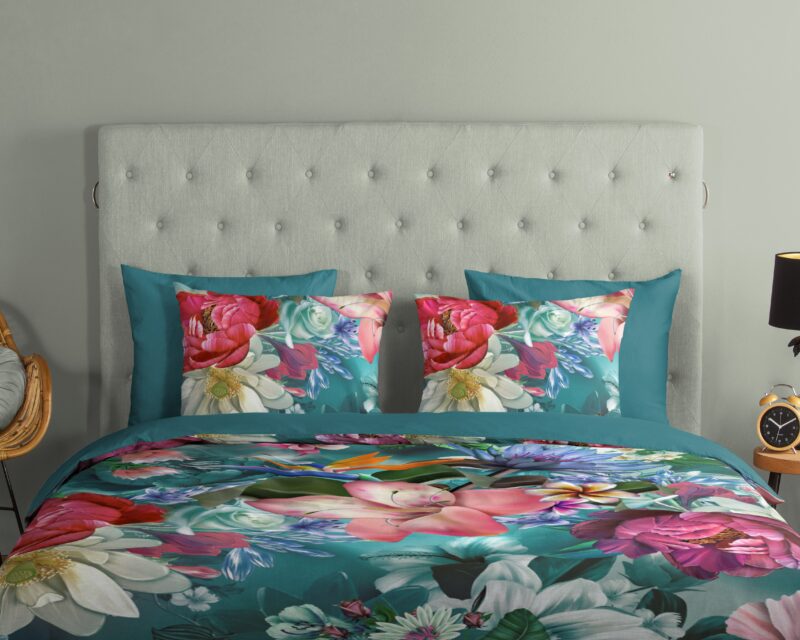 Dekbedovertrek “Tiandra” van Good Morning met bloemen, in de kleur “Petrol” is gemaakt van 100% katoen. Deze kwaliteit is ademend, vochtabsorberend en voelt zacht en soepel aan. Dit mooie dekbedovertrek fleurt iedere slaapkamer op en is geschikt voor ieder jaargetijde. Het katoenen dekbedovertrek is heerlijk koel in de zomer en geeft warmte in de winter.