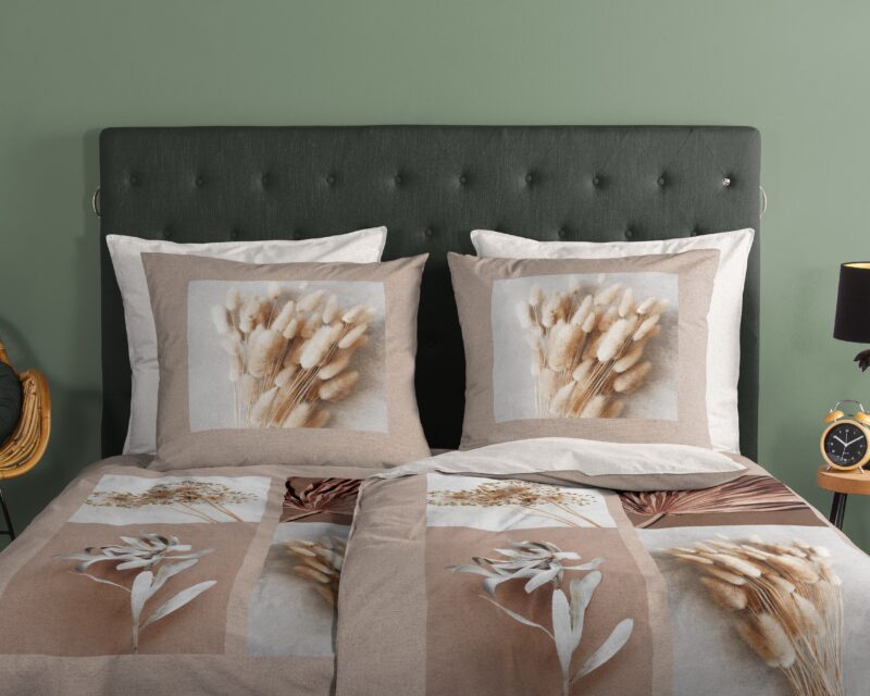 Dekbedovertrek “Kami” van Good Morning met droog bloemen, in de kleur “Zand” is gemaakt van 100% katoen. Deze kwaliteit is ademend, vochtabsorberend en voelt zacht en soepel aan. Dit mooie dekbedovertrek fleurt iedere slaapkamer op en is geschikt voor ieder jaargetijde. Het katoenen dekbedovertrek is heerlijk koel in de zomer en geeft warmte in de winter.