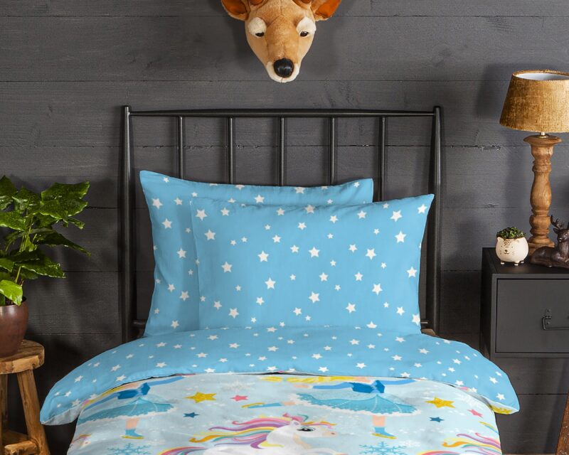 Flanellen dekbedovertrek “Iceprincess” van Good Morning met eenhoorns en prinsessen, in de kleur “Multi” is gemaakt van 100% geruwde 100% katoen/flanel. Doordat het katoen licht opgeruwd is, ontstaat er een zacht laagje. Deze warme, zachte stof is ademend en vochtabsorberend. Dit mooie dekbedovertrek fleurt iedere slaapkamer op en is uitermate geschikt voor de koude wintermaanden.