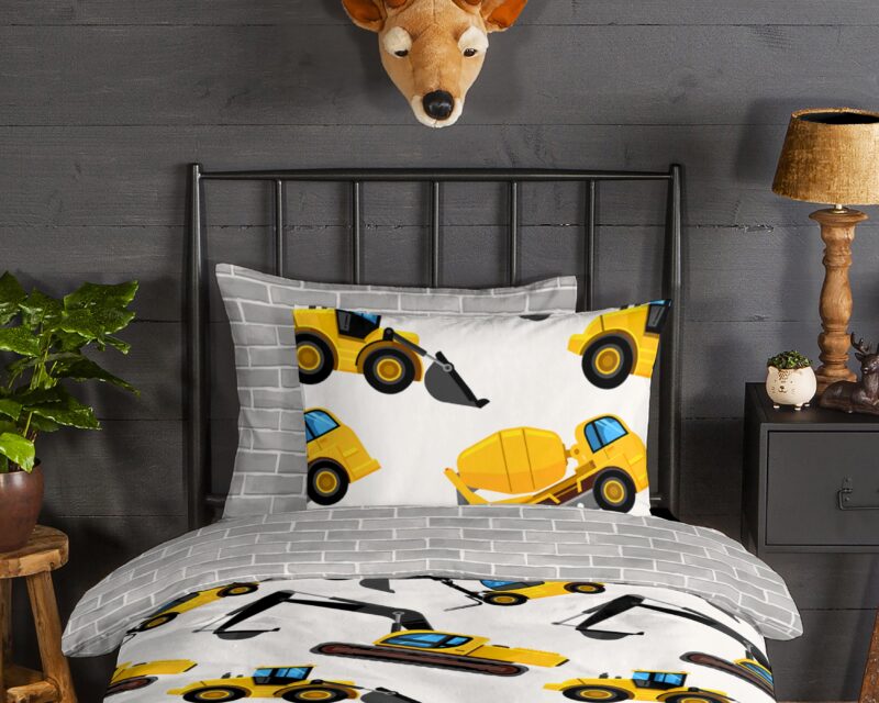 Flanellen dekbedovertrek “Dig” van Good Morning met graafmachines, in de kleur “Geel” is gemaakt van 100% geruwde 100% katoen/flanel. Doordat het katoen licht opgeruwd is, ontstaat er een zacht laagje. Deze warme, zachte stof is ademend en vochtabsorberend. Dit mooie dekbedovertrek fleurt iedere slaapkamer op en is uitermate geschikt voor de koude wintermaanden.