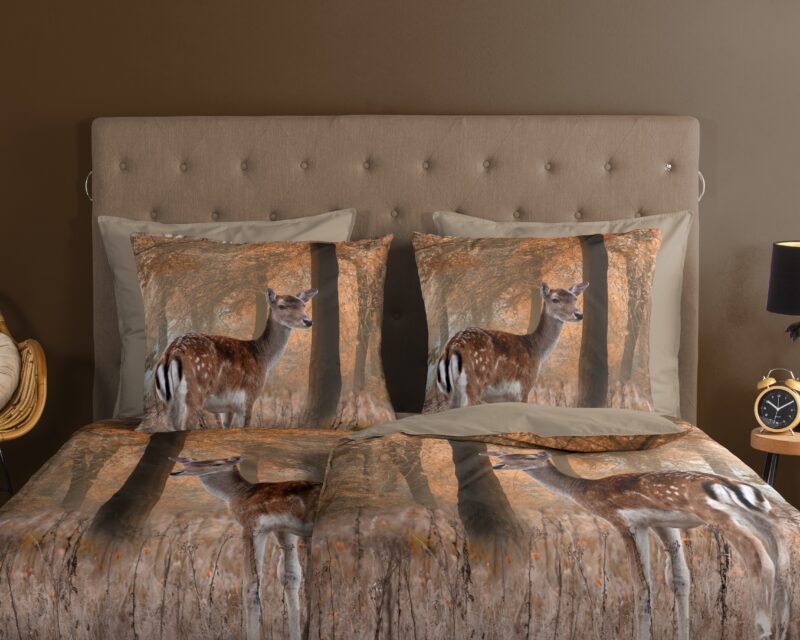 Dekbedovertrek “Gavin” van Good Morning met hert in het bos, in de kleur “Bruin” is gemaakt van 100% katoen. Deze kwaliteit is ademend, vochtabsorberend en voelt zacht en soepel aan. Dit mooie dekbedovertrek fleurt iedere slaapkamer op en is geschikt voor ieder jaargetijde. Het katoenen dekbedovertrek is heerlijk koel in de zomer en geeft warmte in de winter.