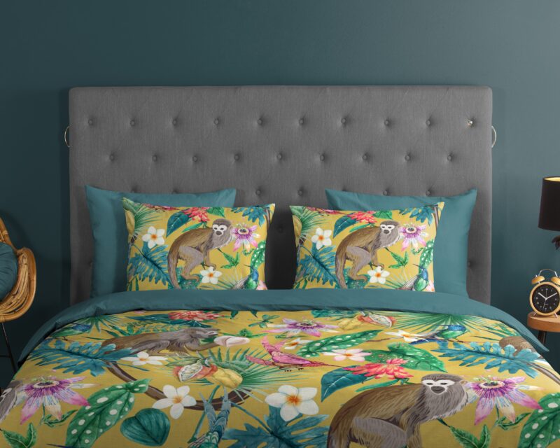 Dekbedovertrek “Meet” van Good Morning met jungle print, in de kleur “Oker” is gemaakt van 100% katoen. Deze kwaliteit is ademend, vochtabsorberend en voelt zacht en soepel aan. Dit mooie dekbedovertrek fleurt iedere slaapkamer op en is geschikt voor ieder jaargetijde. Het katoenen dekbedovertrek is heerlijk koel in de zomer en geeft warmte in de winter.