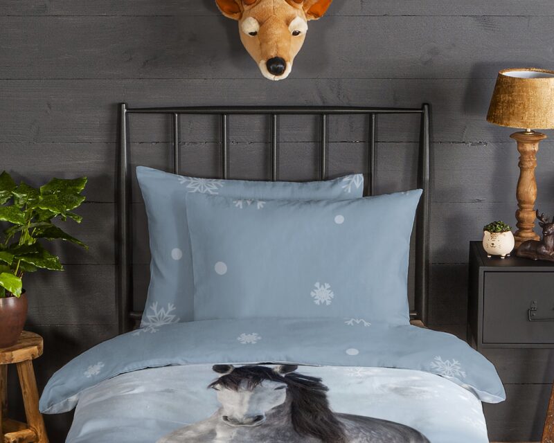 Good Morning Dekbedovertrek “paard in de sneeuw” – Grijs – (140×200 cm) – Katoen Flanel