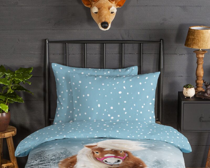 Good Morning Dekbedovertrek “paard in de sneeuw” – Multi – (140×200 cm) – Katoen Flanel
