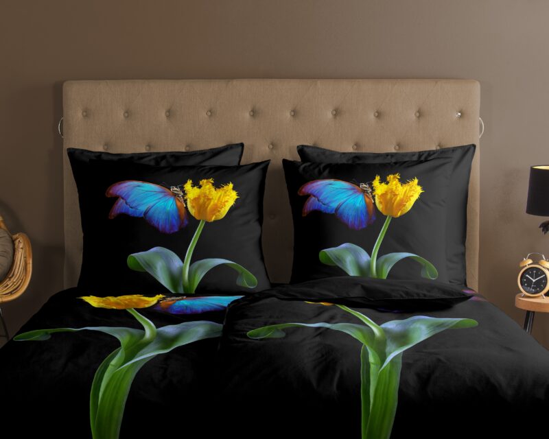 Dekbedovertrek “Hamburg” van Good Morning met papegaai tulp & vlinder, in de kleur “Zwart” is gemaakt van 100% katoen. Deze kwaliteit is ademend, vochtabsorberend en voelt zacht en soepel aan. Dit mooie dekbedovertrek fleurt iedere slaapkamer op en is geschikt voor ieder jaargetijde. Het katoenen dekbedovertrek is heerlijk koel in de zomer en geeft warmte in de winter.