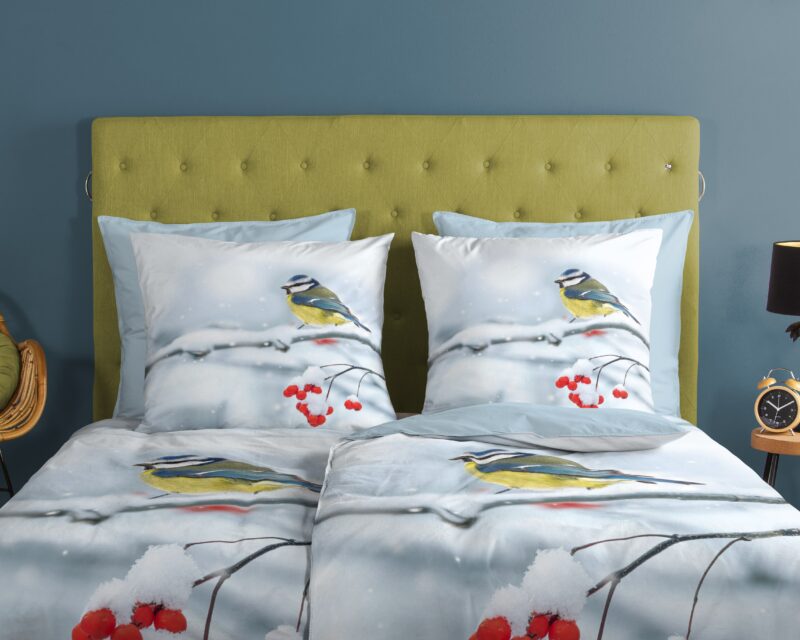 Dekbedovertrek “Crisp” van Good Morning met pimpelmees in de sneeuw, in de kleur “Multi” is gemaakt van 100% katoen. Deze kwaliteit is ademend, vochtabsorberend en voelt zacht en soepel aan. Dit mooie dekbedovertrek fleurt iedere slaapkamer op en is geschikt voor ieder jaargetijde. Het katoenen dekbedovertrek is heerlijk koel in de zomer en geeft warmte in de winter.