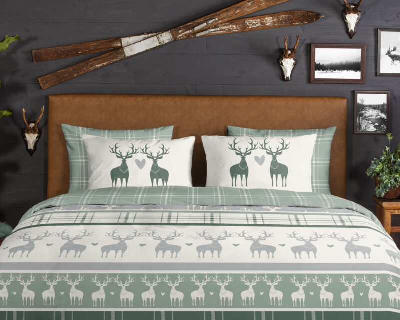 Flanellen dekbedovertrek “Bjirk” van Good Morning met rendieren, in de kleur “Groen” is gemaakt van 100% geruwde 100% katoen/flanel. Doordat het katoen licht opgeruwd is, ontstaat er een zacht laagje. Deze warme, zachte stof is ademend en vochtabsorberend. Dit mooie dekbedovertrek fleurt iedere slaapkamer op en is uitermate geschikt voor de koude wintermaanden.