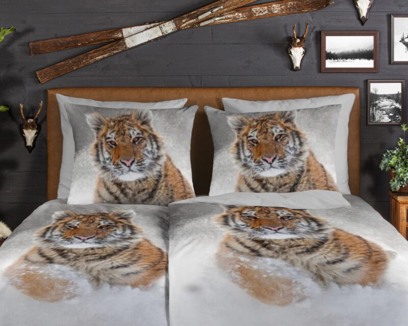 Flanellen dekbedovertrek “Snow Tiger” van Good Morning met tijger in de sneeuw, in de kleur “Grijs” is gemaakt van 100% geruwde 100% katoen/flanel. Doordat het katoen licht opgeruwd is, ontstaat er een zacht laagje. Deze warme, zachte stof is ademend en vochtabsorberend. Dit mooie dekbedovertrek fleurt iedere slaapkamer op en is uitermate geschikt voor de koude wintermaanden.