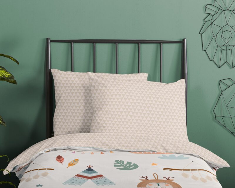 Dekbedovertrek “Remi” van Good Morning met tipi-tenten / boho, in de kleur “Zand” is gemaakt van 100% katoen. Deze kwaliteit is ademend, vochtabsorberend en voelt zacht en soepel aan. Dit mooie dekbedovertrek fleurt iedere slaapkamer op en is geschikt voor ieder jaargetijde. Het katoenen dekbedovertrek is heerlijk koel in de zomer en geeft warmte in de winter.