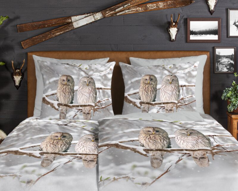 Flanellen dekbedovertrek “Febe” van Good Morning met uilen in winterlandschap, in de kleur “Grijs” is gemaakt van 100% geruwde 100% katoen/flanel. Doordat het katoen licht opgeruwd is, ontstaat er een zacht laagje. Deze warme, zachte stof is ademend en vochtabsorberend. Dit mooie dekbedovertrek fleurt iedere slaapkamer op en is uitermate geschikt voor de koude wintermaanden.