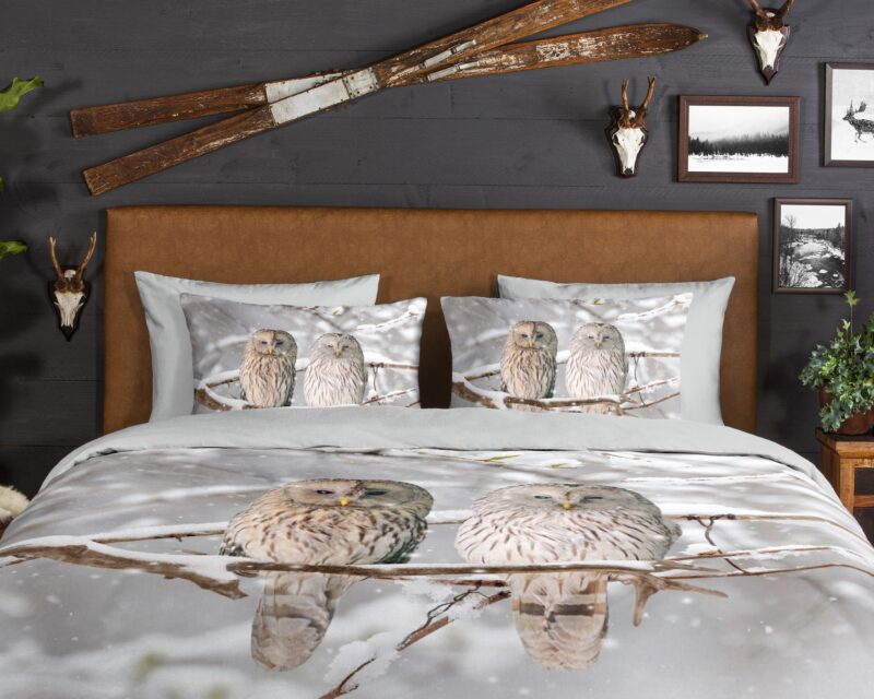 Flanellen dekbedovertrek “Febe” van Good Morning met uilen in winterlandschap, in de kleur “Grijs” is gemaakt van 100% geruwde 100% katoen/flanel. Doordat het katoen licht opgeruwd is, ontstaat er een zacht laagje. Deze warme, zachte stof is ademend en vochtabsorberend. Dit mooie dekbedovertrek fleurt iedere slaapkamer op en is uitermate geschikt voor de koude wintermaanden.