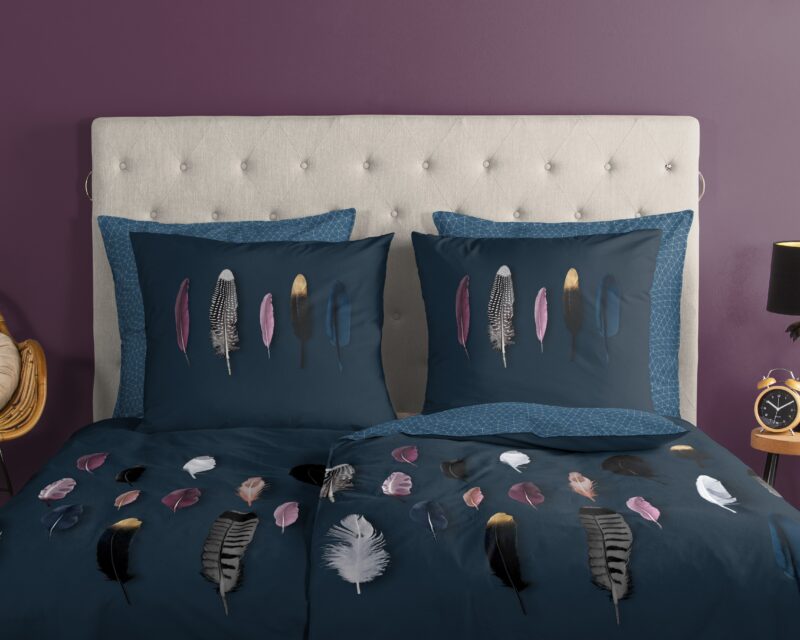 Dekbedovertrek “Feathers” van Good Morning met veren, in de kleur “Blauw” is gemaakt van 100% katoen. Deze kwaliteit is ademend, vochtabsorberend en voelt zacht en soepel aan. Dit mooie dekbedovertrek fleurt iedere slaapkamer op en is geschikt voor ieder jaargetijde. Het katoenen dekbedovertrek is heerlijk koel in de zomer en geeft warmte in de winter.