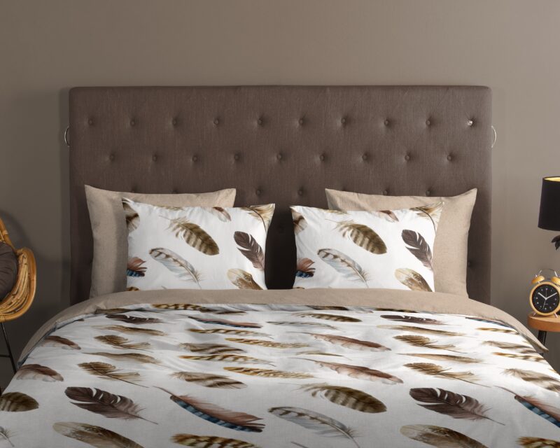 Dekbedovertrek “Fedra” van Good Morning met veren, in de kleur “Zand” is gemaakt van 100% katoen. Deze kwaliteit is ademend, vochtabsorberend en voelt zacht en soepel aan. Dit mooie dekbedovertrek fleurt iedere slaapkamer op en is geschikt voor ieder jaargetijde. Het katoenen dekbedovertrek is heerlijk koel in de zomer en geeft warmte in de winter.