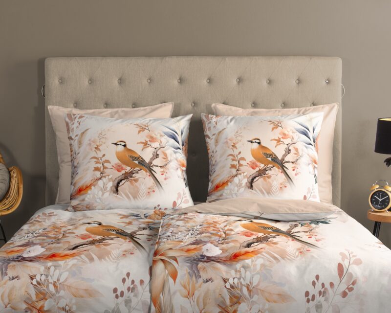 Dekbedovertrek “Gloria” van Good Morning met vogel en bloemen, in de kleur “Multi” is gemaakt van 100% katoen. Deze kwaliteit is ademend, vochtabsorberend en voelt zacht en soepel aan. Dit mooie dekbedovertrek fleurt iedere slaapkamer op en is geschikt voor ieder jaargetijde. Het katoenen dekbedovertrek is heerlijk koel in de zomer en geeft warmte in de winter.