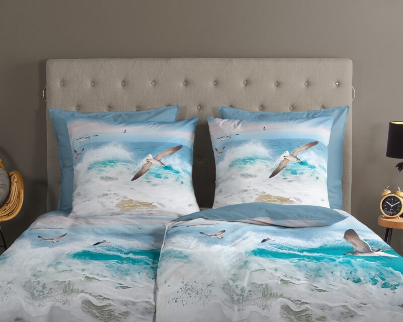 Dekbedovertrek “Celle” van Good Morning met wilde zee/ golven/ meeuwen, in de kleur “Blauw” is gemaakt van 100% katoen. Deze kwaliteit is ademend, vochtabsorberend en voelt zacht en soepel aan. Dit mooie dekbedovertrek fleurt iedere slaapkamer op en is geschikt voor ieder jaargetijde. Het katoenen dekbedovertrek is heerlijk koel in de zomer en geeft warmte in de winter.