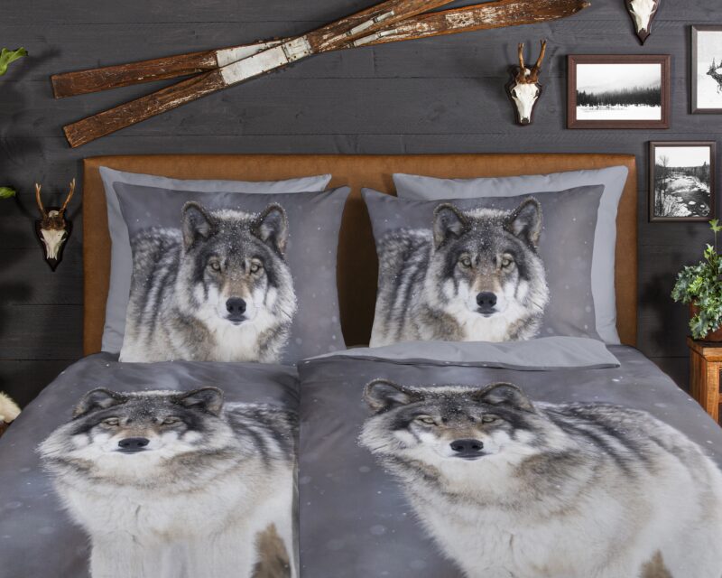 Good Morning Dekbedovertrek “wolf” – Grijs – (155×220 cm) – Katoen Flanel